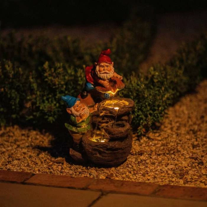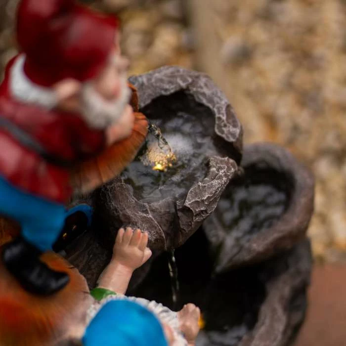 41cm Solar Rock Fall Gnomes Cascading Water Feature With Battery Backup and Lights By Solaray