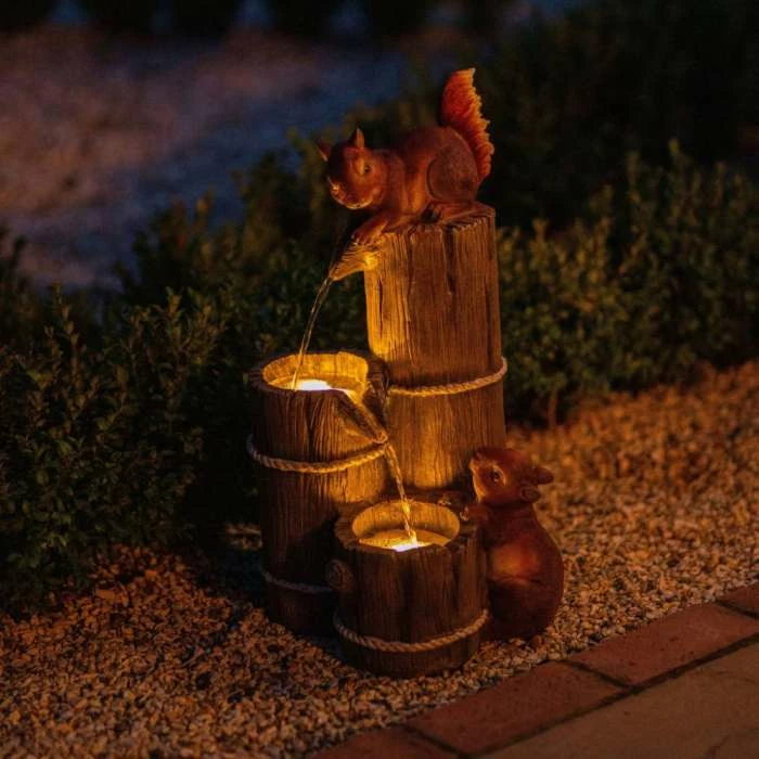 The squirrels look like they’re trying to help, but this solar-powered water feature needs nothing but the sun to keep the water flowing. Made from UV- and frost-resistant polyresin (to resist life’s wears and tears), this playful little feature is sure to be a focal point of your garden. With an internal water reservoir you can place your feature wherever you choose, and keep it in the sunshine for an ongoing stream free of the need for mains power. And, with LED lights to illuminate the water flow and feature, you can enjoy every part of this fountain come day or night (with battery backup!).