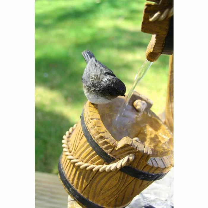 Evoking a bygone era, this traditionally styled water feature will bring an idyllic country scene into your back garden, complete with a charming garden bird. Water is cycled throughout the feature, cascading through the buckets. There is no need to run an electrical able outside, thanks to the solar panel, which will save you from another cost on your energy bill.