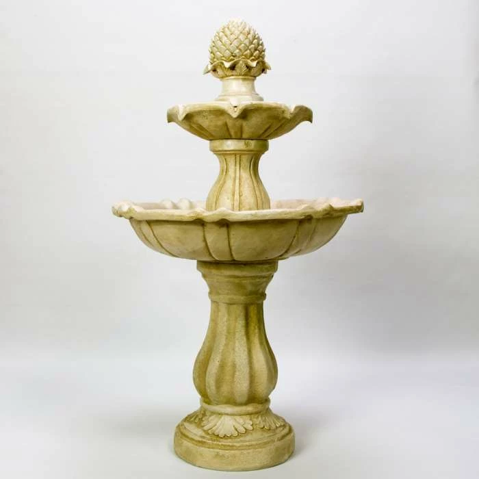 This attractive tiered fountain would make a great focal point in any setting. Made from polyresin and given a beautiful antique ivory finish this lovely feature is bound to draw admiring glances. The water pours out from the pineapple on the top and gently cascades down to the bowls below creating a calm trickling sound.