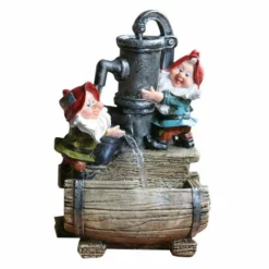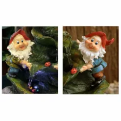 H36cm Two Gnomes on Leaves Water Feature with Lights | Indoor/Outdoor Use – by Ambienté