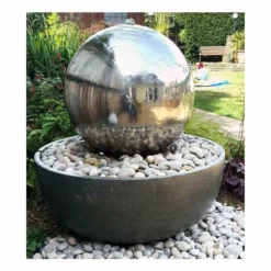 H45cm Eclipse Sphere Stainless Steel Water Feature with Lights | Indoor/Outdoor Use by Ambienté