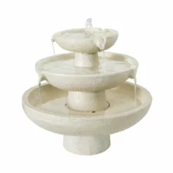 H42cm Barnwell Ivory 3-Tier Cascading Solar Water Feature by Solaray