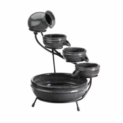 H42cm Dalton 4-Tier Cascading Solar Water Feature & Herb Planter by Solaray