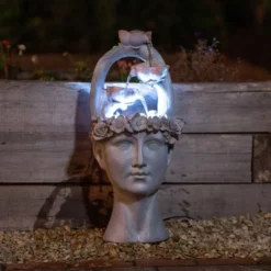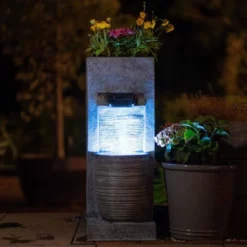 61cm Water Pump Tap And Open Barrel Cascading Planter Water Feature With Lights By Ambienté