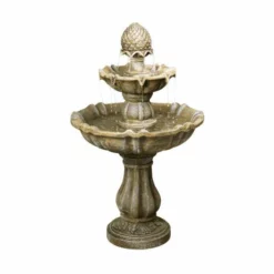 H104cm Almeria Concrete Trough Water Feature with Classic Spout | Indoor/Outdoor Use by Ambienté